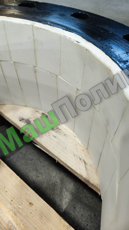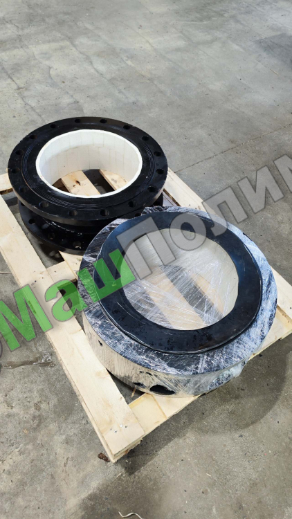 В рамках проекта поставлены 2 единицы переходов MakeLand Q235 386/363×10×10×200 PN10 с керамическим внутренним покрытием – они изготовлены из стали Q235, имеют толщину износостойкой керамики 10 мм, фланцы приварные. Данное техническое решение позволит осуществить монтаж полимерно-армированной трубы для устройства пульпопровода с небольшим изменением внутреннего диаметра в меньшую сторону.